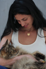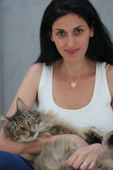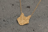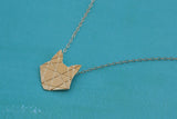 The pendant is made of brass and plated with high-quality, thick gold (without nickel) with a matte finish, on top of a delicate gold-filled chain.