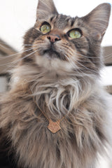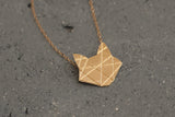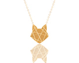 A charming necklace in the shape of a cat with stripes that simulate paper folds.