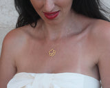 The pendant is made of hammered brass and coated with high-quality, thick gold with a matte finish on top of a high-quality gold-filled chain.
