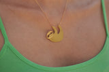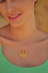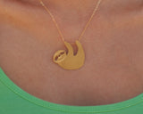 The pendant is in the shape of a cute and smiling sloth that hangs on the chain as it hangs on trees.