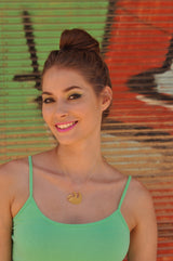 The pendant is made of brass and plated with high-quality, thick gold (without nickel) with a matte finish, on top of a delicate gold-filled chain; Goldfield offers the same physical properties as gold; Beauty, luxury, quality and durability over time.