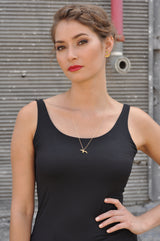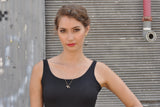 A minimalist and contemporary necklace that is suitable for a tank top and jeans as well as a black dress, for work and going out in the evening.