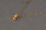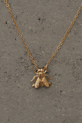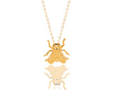 The fly pendant is made of brass, plated with high-quality gold and matte finish, on a gold filled chain. Gold filled offers all the physical attributes to gold such as beauty, luxury, quality, strength and durability over time.