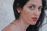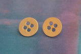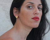 These cute button earrings are made of brass and plated with high quality, thick gold with a matte finish. The rods of the earrings are made of silver, therefore hypoallergenic and come with strong and comfortable silicone brackets.