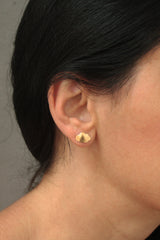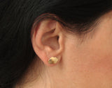 Gold cloud earrings close to the ear