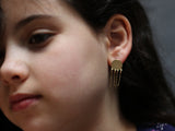 The earrings are made of hammered brass and plated with high-quality nickel-free gold with a matte finish. The rod that goes into the ear is made of gold-plated silver, and is therefore hypoallergenic. The earrings come with comfortable silicone brackets.