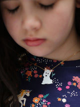 The pendant is made of brass and painted by precise and careful hand in durable colors. The pendant hangs on a goldfield chain. Goldfield offers all the same physical properties as gold, such as beauty, luxury, strength, quality and durability over time.