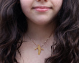 The pendant is made of brass and plated with high-quality and thick gold, nickel-free, on a gold-filled chain; Goldfield is an excellent substitute for gold, but at a more accessible price.
