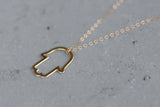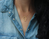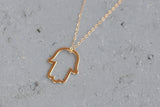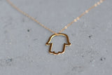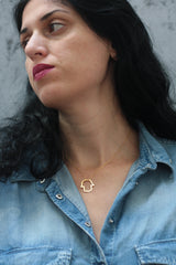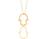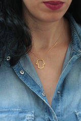 A delicate necklace of hollow hamsa, which will add a special touch to any everyday appearance.