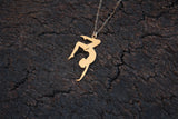 The pendant is made of brass and plated with high-quality gold (nickel-free) with a matte finish. The chain on which the pendant hangs is a fine goldfield chain.