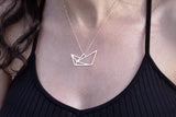 The pendant in the shape of a paper boat made of paper folds is made of brass and plated with thick high-quality gold (nickel-free) with a matte finish on a gold-filled chain; Goldfield offers the same physical properties as gold; Beauty, luxury, quality and durability over time.