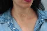 Neck chain (choker) with a pendant of the infinity symbol. The chain is tight, but comes with an extension chain, so it will also fit a thicker neck.