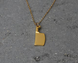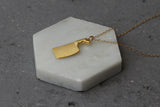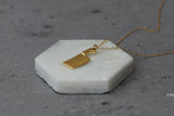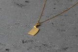 The pendant is made of brass and plated with high-quality, thick gold (without nickel) with a matte finish, on top of a delicate gold-filled chain.