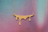 Cute necklace featuring a paint dripping pendant. The pendant is made of brass plated with high quality nickel free gold, and a matte finish, on gold filled chain. Gold filled is a wonderful alternative for those who love gold but want something more affordable.