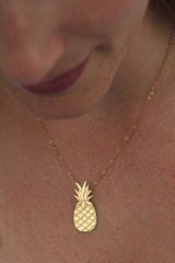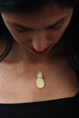 Gold Pineapple Necklace - Tropical Fruit Necklace