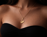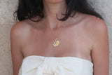The pendant is handmade from hammered brass and plated with high-quality, thick gold (nickel-free) with a matte finish on a gold-filled chain. Goldfield is an excellent and affordable solution for those who like the look of gold, but not its price.
