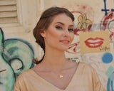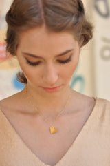The pendant is made of brass and plated with high-quality gold (nickel-free) with a matte finish. The chain on which the pendant hangs is from Goldfield.