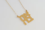 The pendant is made of brass plated with high-quality gold and matte finish, on a gold filled chain. Gold filled offers all the physical attributes to gold such as beauty, luxury, quality, strength and durability over time. Because gold is found only on the outside of the gold filled it's almost impossible to distinguish between gold and gold filled.