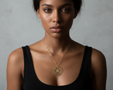A charming necklace in the shape of a mandala flower, which will add interest to any appearance.