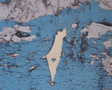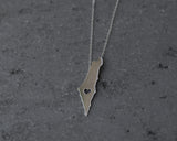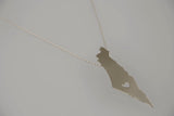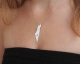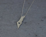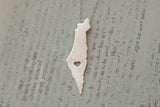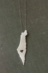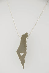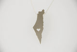 The pendant is completely and meticulously handmade in the shape of the borders of the complete Land of Israel and inside it a heart symbolizing the love of the land.