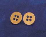 These cute button earrings are made of brass and plated with high quality, thick gold with a matte finish. The rods of the earrings are made of silver, therefore hypoallergenic and come with strong and comfortable silicone brackets.