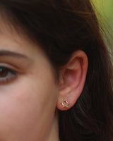 The earrings are small and close to the ear, will suit any style and look and any occasion. The earrings are made of brass and plated with high-quality nickel-free gold. The rods that go into the ear are made of silver, therefore hypoallergenic and come with silicone brackets.