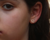 Small gold Star of David earrings close to the ear in a delicate and cute design, which will suit women and men, girls and children of all ages.