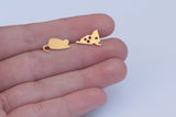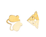 Original earrings, one in the shape of a mouse and the other in the shape of a yellow cheese.
