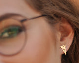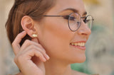 The earrings are made of brass and plated with high-quality nickel-free gold. The rods of the earrings that go into the ear are made of silver, therefore hypoallergenic and come with comfortable and durable silicone brackets.
