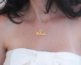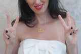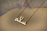 The pendant is made of textured brass and plated with thick, high-quality gold (nickel-free) with a matte finish, on a gold-filled chain.