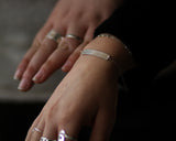 For this measurement you must have a thread, a pen and a ruler. You must shrink your hand as in the picture, surround the widest part of the palm with the thread from end to end and mark with the pen the point where the two ends of the thread meet. Then place the thread on the ruler and check what is the right circumference for you.A guide to finding the size of a hard bracelet