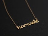 Golden namaste inscription necklace