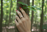 הטבעת גולפה בשעווה בעבודת יד, תהליך שמאפשר חופש צורני מלא ויצירת צורה שלא ניתן לחקות במדויק. לאחר מכן נוצקה בכסף סטרלינג 925, היא איכותית ועמידה ותוכל ללוות אותך לנצח.
