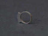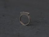 טבעת ייחודית בעלת נוכחות מודרנית ונקייה, עם חלק עליון בולט בעל קווים חדים, טקסטורה בולטת ומראה מפוסל. צורת הטבעת מעניקה לתכשיט אופי מינימליסטי אך בלתי שגרתי.