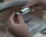 דרך נוספת למדידת מידת הטבעת שלכם היא באמצעות חוט או חתיכת נייר. מלבד החוט תצטרכו גם סרגל ועט. ככה עושים את זה: לוקחים את חוט התפירה ומלפפים אותו סביב האצבע עליה רוצים לענוד את הטבעת (שימו לב שיש הבדל גם בין מידת האצבע ביד ימין ליד שמאל), יש להקפיד ללפף את החוט סביב החלק התחתון והעבה יותר של האצבע. מסמנים עם העט את הנקודה שבה שני קצוות החוט נפגשים ומודדים את אורך החוט עד לנקודה זו עם הסרגל. יחידות המידה שמתקבלות הן בסנטימטרים וכאשר יש ברשותנו את אורך החוט יהיה עלינו לגשת לטבלת מידות על מנת לזהות מהי מידת הטבעת שלנו.