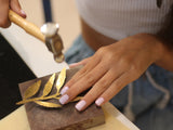 במהלך הסדנא כל אחת מכן תבחר את המתכת האהובה עליה (פליז או נחושת), את העיצוב הרצוי ואת הגימור והטקסטורה. ב-3 שעות של כיף, תכירו ותלמדו טכניקות יסוד בצורפות- ניסור, שיוף, פיצור, ריקוע, סוגי גימורים ועוד.