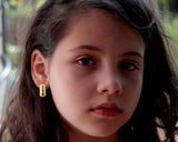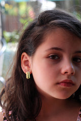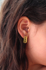 העגילים עשויים מפליז ומצופים זהב איכותי ללא ניקל בגימור מט. המוטות שנכנסים לאוזן עשויים מכסף, ולכן היפו אלרגניים ומגיעים עם סוגרי סיליקון.